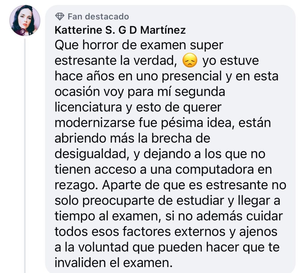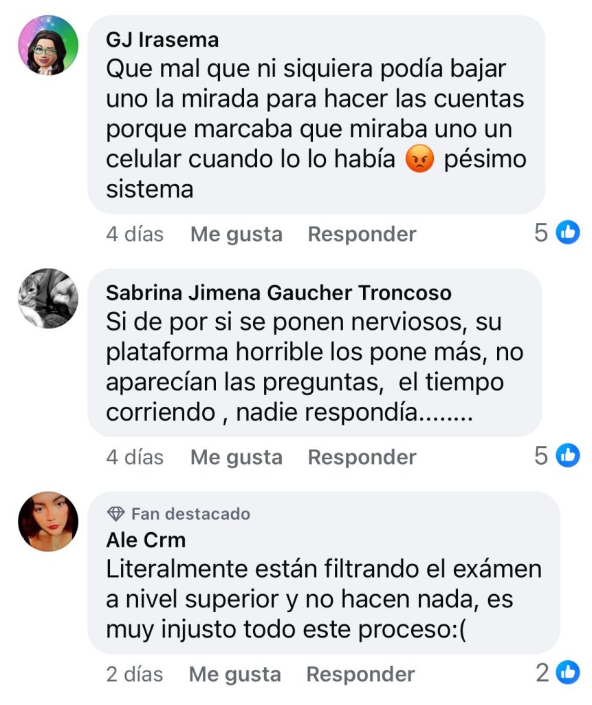 Empezando porque el navegador no les permitía ingresar o bien, no los dejaba avanzar en las preguntas; otros tantos se quejaron de que la plataforma los sacaba sin motivo alguno, ignorando por completo si el avance quedaba registrado o si les permitirían volver a empezar. También, hubo quejas acerca de que las preguntas no estaban relacionadas al temario que les fue entregado previamente.